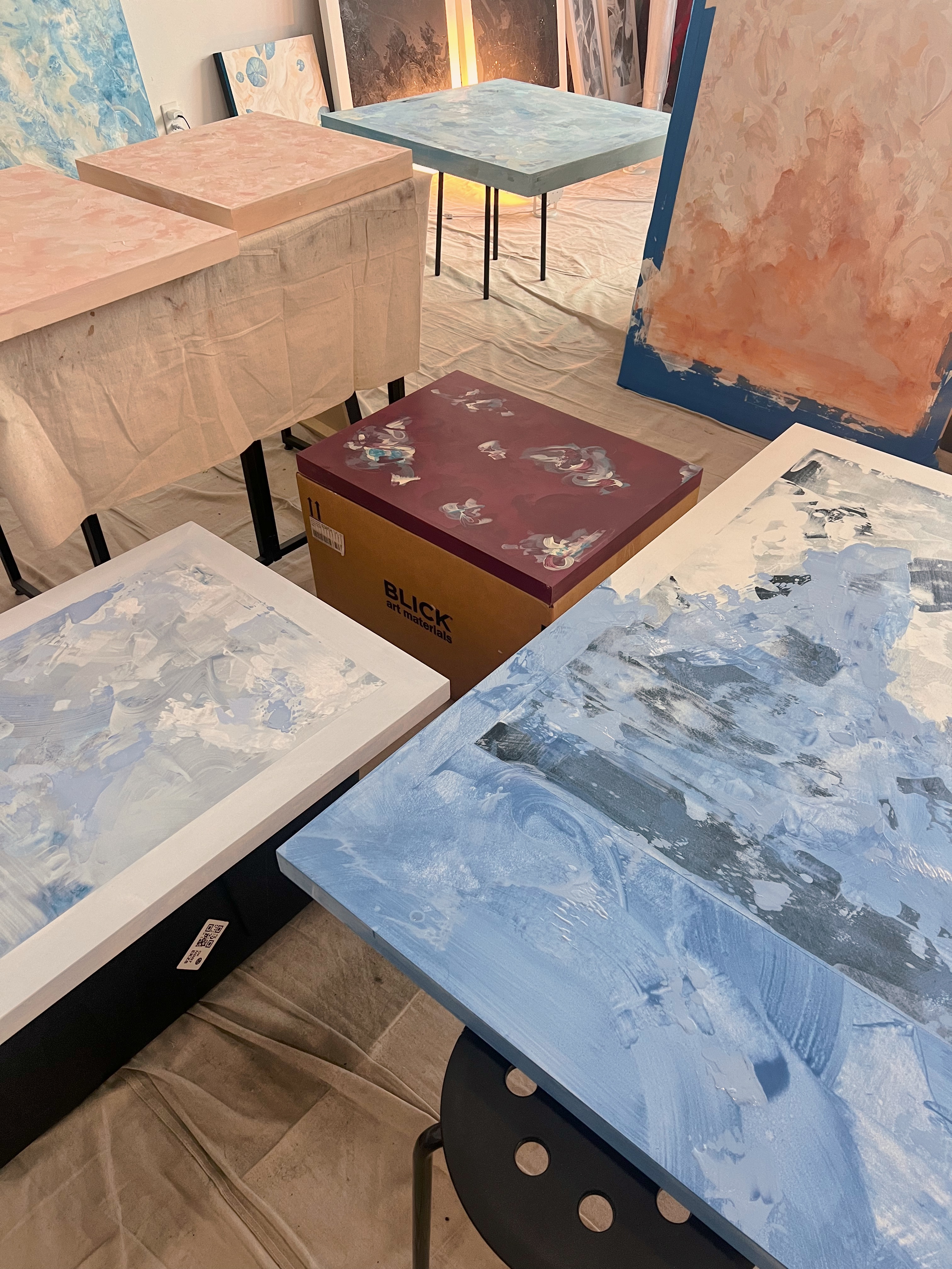 Studies in Pastell, working on several pieces in this muted pallet into spring. Titan pinks, yellow ochre, japanese gold sumi, Tian greens and blues.
